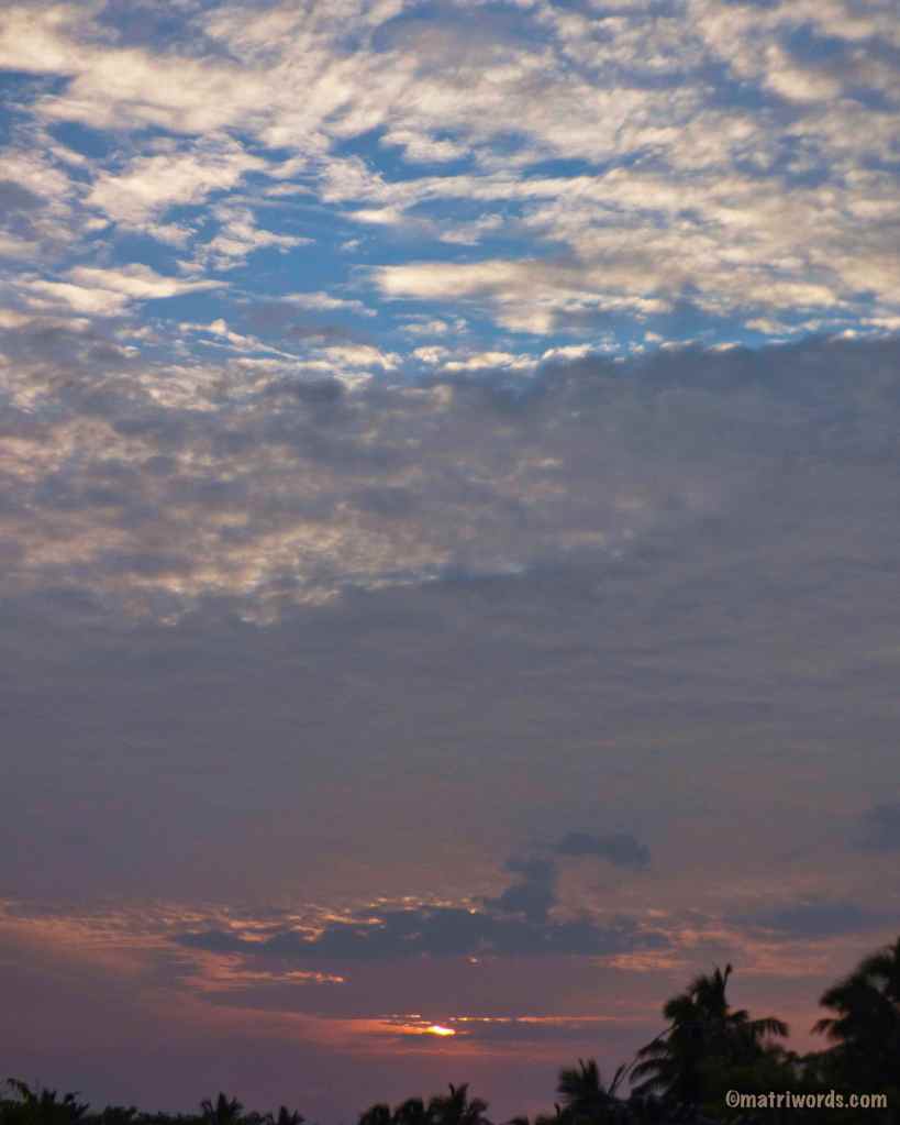 The photos were taken by Suhas Mehra on different dawns. The passages from Sri Aurobindo‘s Savitri were selected by Beloo Mehra as she read the epic mantric poem on different evenings. All this happened at the rooftop of our home near Pondicherry, and is now offered at the Lotus Feet of the Mother.